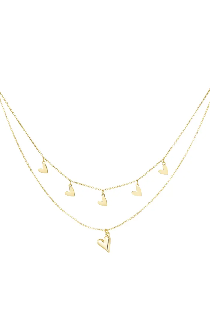 Goudkleurige ketting met 2 laagjes met allemaal hartjes